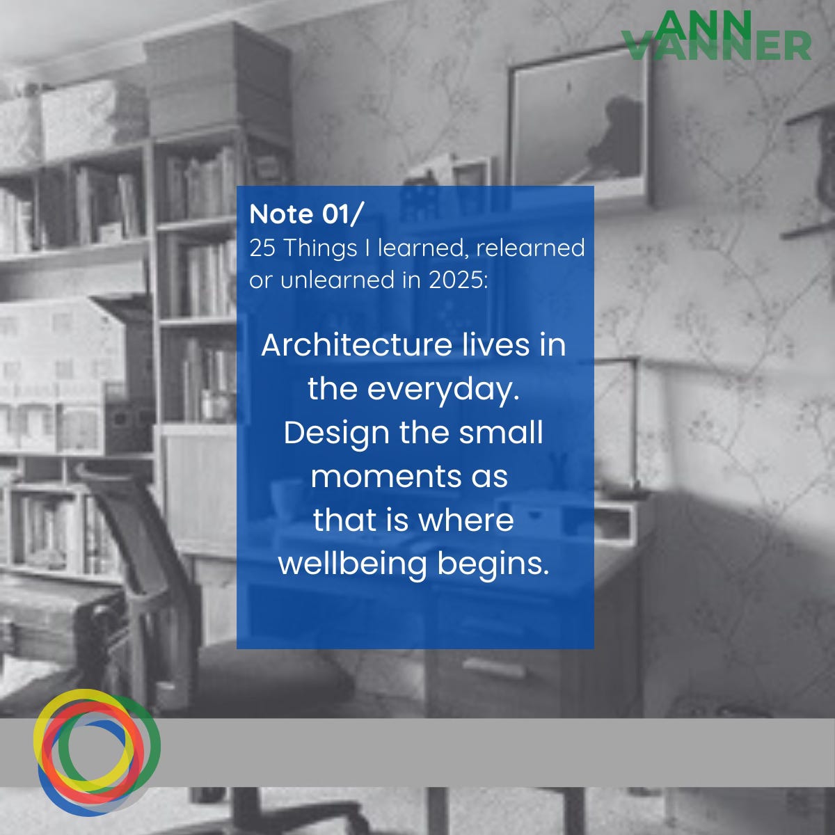This year has reminded me that the most powerful lessons in architecture don’t come from the exceptional, they come from the everyday. The small, repeated, ordinary moments that make up 99% of how we actually live. The moments that rarely get photographed, celebrated, or even noticed. And yet those are the moments that shape our wellbeing the most.